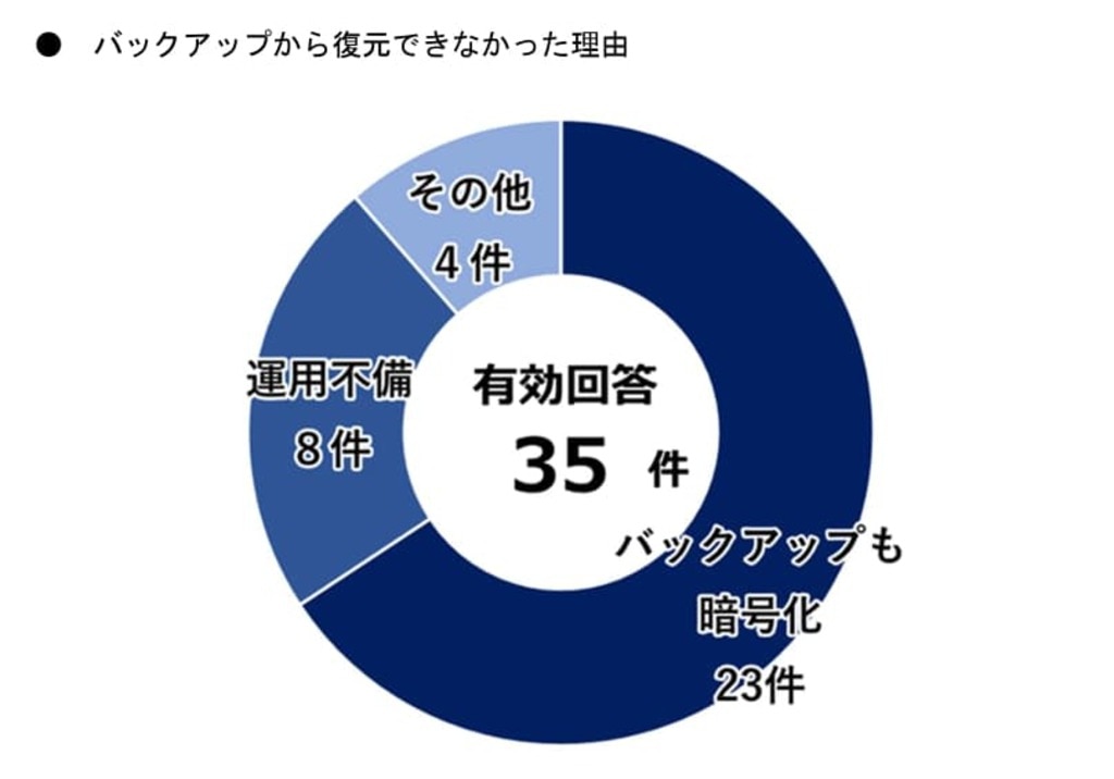 同じく警察庁の調査によると、復元できなかった理由の7割近くが、「バックアップそのものの暗号化」でした。