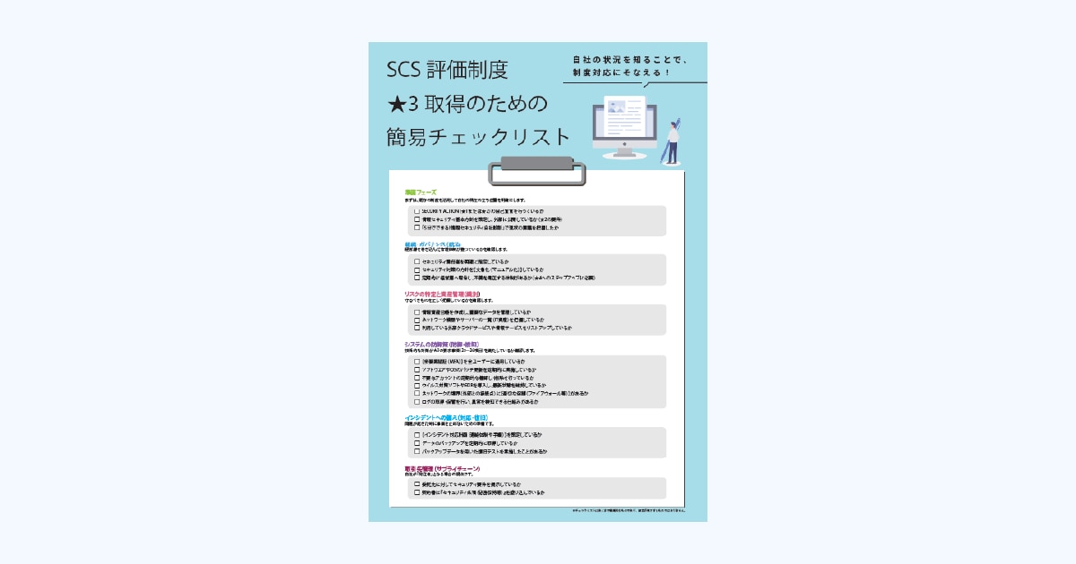 「セキュリティ対策評価制度(SCS評価制度)」 ★3取得のための簡易チェックシートです。