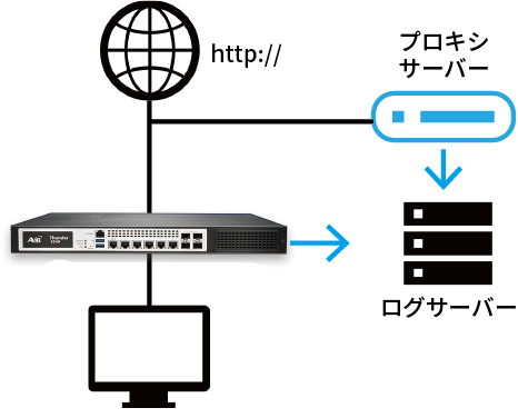 一台のアプライアンスを利用した設置も可能です。二台で挟む構成と同じく、明示型・透過型プロキシとしての動作が可能です。