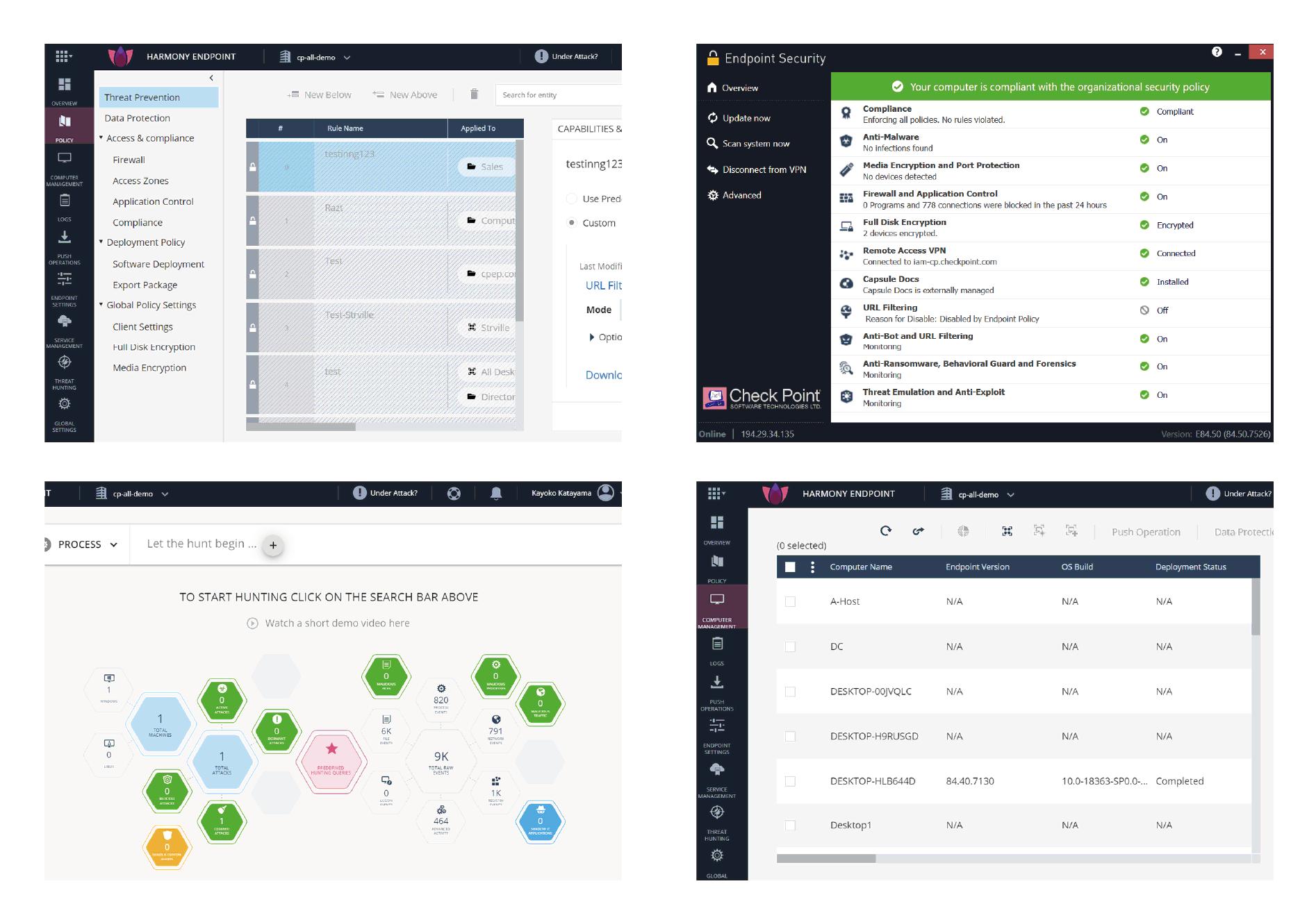 従来のアンチウイルス機能に加えて Harmony Endpoint は様々な機能を搭載。